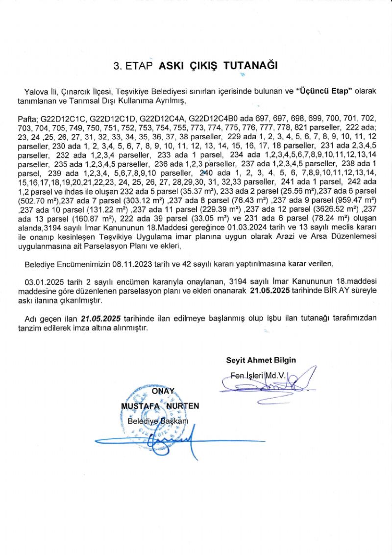 CUMHURİYET VE İSTİKLAL MAHALLESİ'NDE YAPILAN 3. ETAP İMAR UYGULAMASI 30 GÜN SÜREYLE ASKIYA ÇIKARILMIŞTIR. CUMHURİYET VE İSTİKLAL MAHALLESİ'NDE YAPILAN 3. ETAP İMAR UYGULAMASI 30 GÜN SÜREYLE ASKIYA ÇIKARILMIŞTIR.
